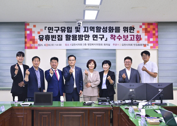 김천시의회 빈집활용연구회(대표의원 김응숙)는 나영민 의장, 박대하 의원, 임동규 의원을 포함한 총 4명의 의원으로 구성되어 있으며, 6월 18일(수) 시의회 회의실에서 『인구 유입 및 지역 활성화를 위한 유휴 빈집 활용 방안 연구』 용역 착수보고회를 개최했다.